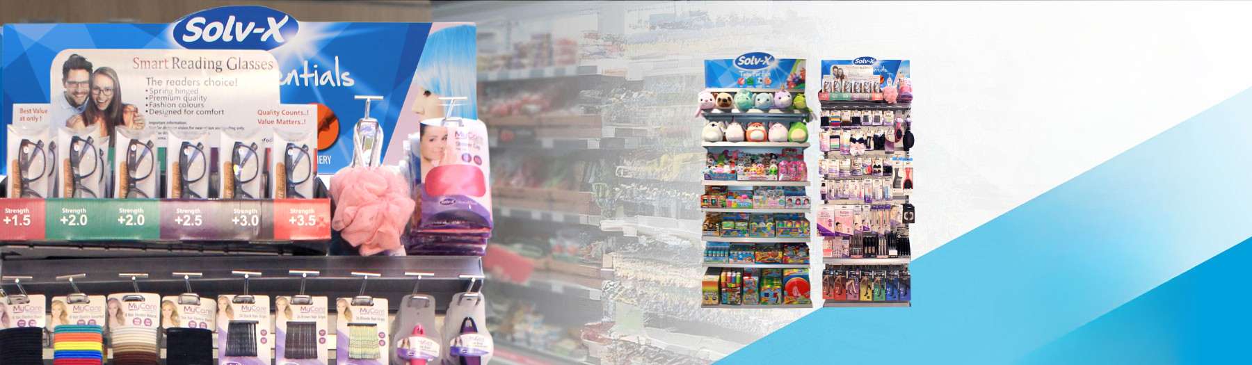 Solv-X Essentials offer stores the best one display product mix, of personal and household accessories.