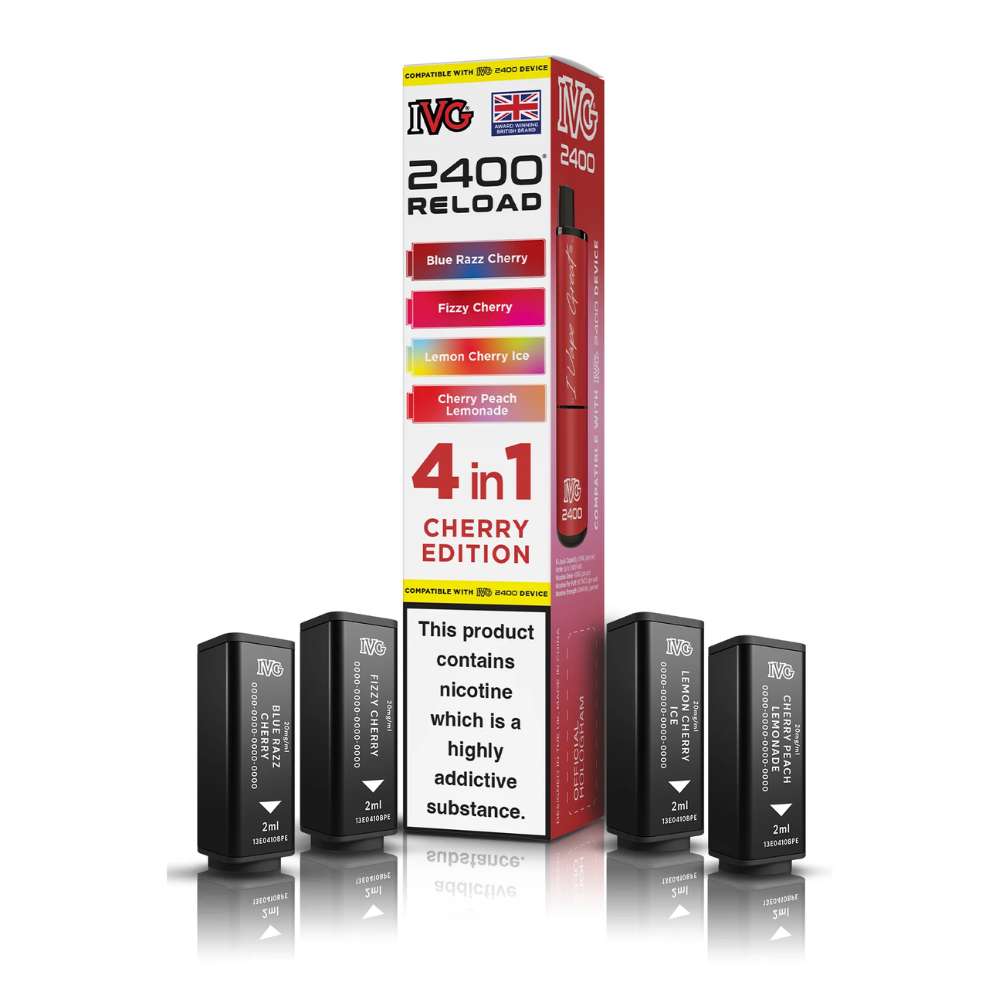 Keep your IVG 2400 4-in-1 rechargeable device bursting with flavour with the Cherry Edition Reload Pods, featuring four vibrant cherry-inspired flavours: